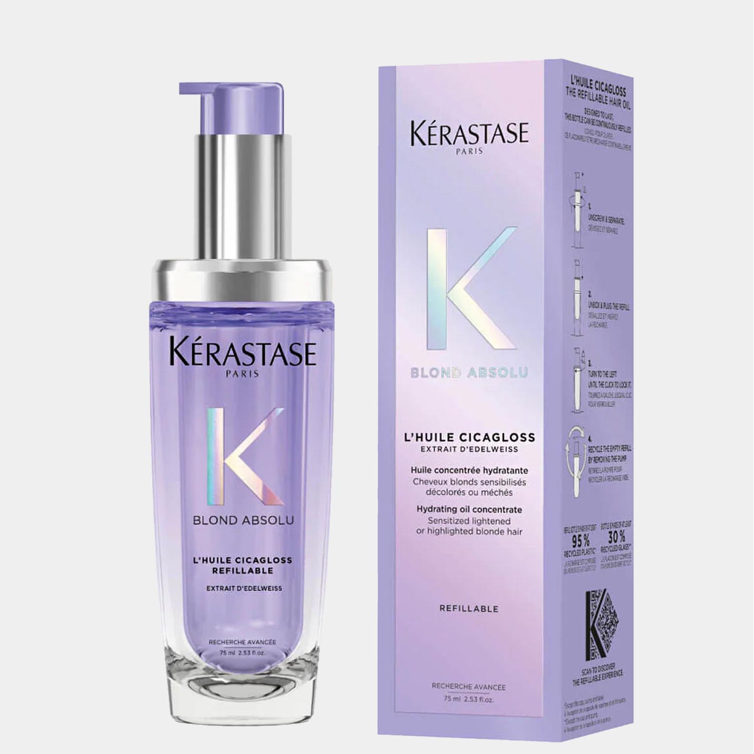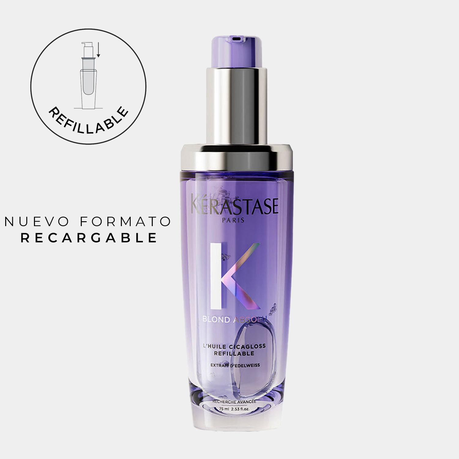 L’huile Cicagloss recargable hidrata en profundidad, fortalece las fibras dañadas y ayuda al cabello a reconstruirse tras los daños causados por la decoloración o el aclarado, para un brillo instantáneo. Está enriquecido con Edelweiss, una flor extremófila que crece a 3 000 metros de altura en los Alpes suizos y está expuesta a fuertes vientos, rayos UV y bajas temperaturas. Extraída con delicadeza, se preserva la resistencia de los principios activos.